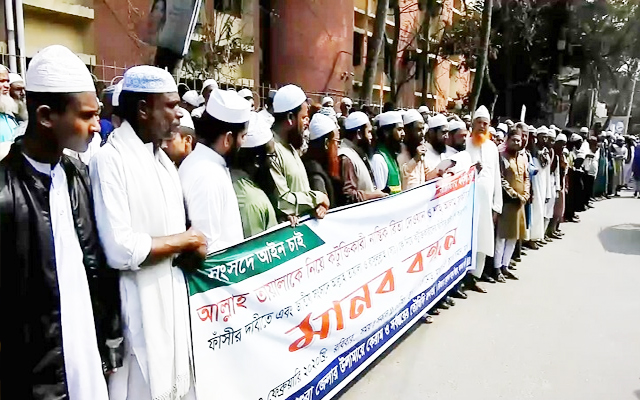 আজ রোববার মাগুরা শহরের চৌরঙ্গীমোড় প্রেসক্লাবের সামনে ‘উলামায়ে কেরাম ও সর্বস্তরের তৌহিদি জনতা’ ব্যানারে এ মানববন্ধন অনুষ্ঠিত হয়।