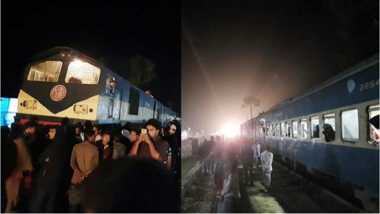 দুই ট্রেনের যাত্রীদের চিৎকারে এ সময় এলাকার হাজার হাজার মানুষ রেলস্টেশনে এসে জড়ো হন।