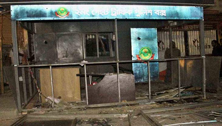 এ দিকে বিস্ফোরণে আহত এএসআই আতাউদ্দিন জানান, আমরা পুলিশ বক্সের ভেতরে বসা ছিলাম। হঠাৎ বিকট শব্দ হয়ে আগুন ধরে যায়। এতেই তিনি পাশে ছিটকে পড়েন।