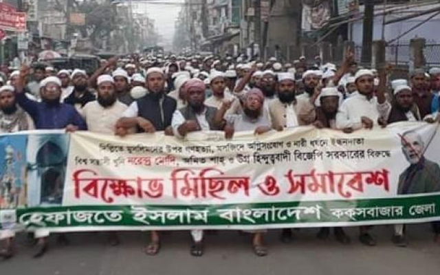 তিনি বলেন, ‘বাংলাদেশ সাম্প্রদায়িক সম্প্রীতির দেশ। এখানে সব ধর্মের লোকজন স্বাধীনভাবে বসবাস করছে। কিন্তু ভারতে সংখ্যালঘু মুসলমানদের ওপর নির্যাতন হবে তা মেনে নেওয়া যায় না। ভারতের মুসলমান গণহত্যা ও মসজিদ পুড়িয়ে ধ্বংস করার সঙ্গে জড়িতদের বিরুদ্ধে কঠোর ব্যবস্থা নিতে হবে।’