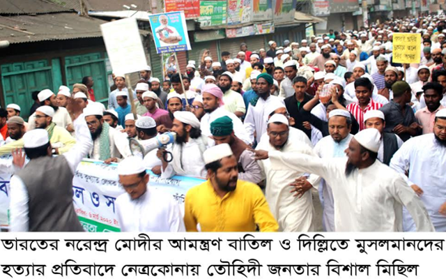 মুজিববর্ষে ভারতের প্রধানমন্ত্রী নরেন্দ্র মোদির আমন্ত্রণ বাতিল এবং দিল্লিতে মুসলমানদের হত্যা, মসজিদ ভাংচুর ও পবিত্র কুরআনে অগ্নিসংযোগের প্রতিবাদে নেত্রকোনায় বিশাল বিক্ষোভ মিছিল ও প্রতিবাদ সমাবেশ করেছে তৌহিদী জনতা।