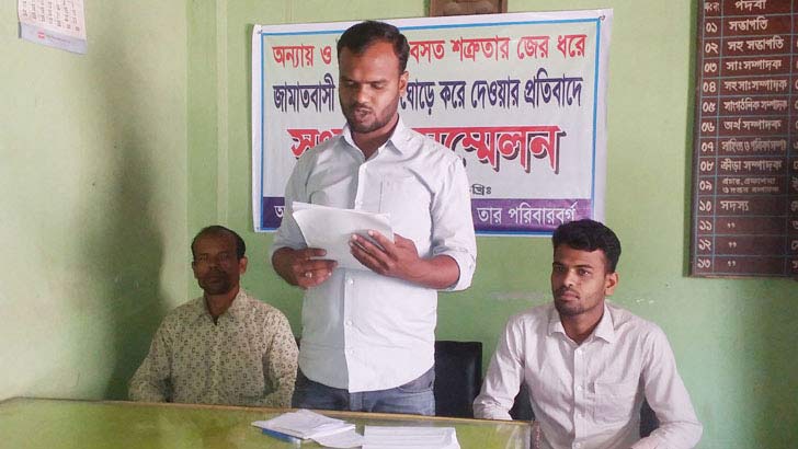 সংবাদ সম্মেলনে লিখিত বক্তব্যে নাওয়াপাড়া গ্রামের মৃত আব্দুল মজিদের ছেলে মো. মানিক ইসলাম বাবু জানান, উপজেলার সদর ইউনিয়নের পশ্চিম চিকনমাটি নাওয়াপাড়া বাইতুর রহমত জামে মসজিদটির বয়স প্রায় ১২০ বছর। এই মসজিদে এক সময় আমার দাদার বাবা মাওলানা নীল মামুদ মোতায়াল্লি হিসেবে দায়িত্ব পালন করেছে। আমার বাবা মৃত আবদুল মজিদও উক্ত মসজিদের কোষাধ্যক্ষ হিসেবে দায়িত্ব পালন করেছিল। গত তিন বছর পূর্বে মসজিদের নতুন কমিটি দায়িত্ব নেয়। এর পর থেকে ওই কমিটির সম্পাদক মো. শাহিন ইসলাম ও কোষাধ্যক্ষ ইউসুফ আলীর সঙ্গে আমাদের পারিবারিক বিরোধ থাকায় সেই প্রতিহিংসার জেরে মসজিদের জামাত থেকে আমাদের একঘরে করে রাখার পাশাপাশি মসজিদে আমাদের পরিবারের কাউকে নামাজ পড়তে দেন না।