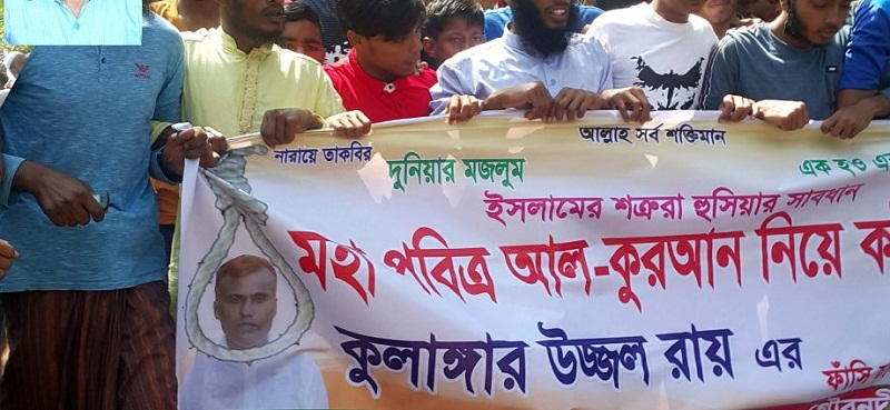 এদিকে ইসলাম ধর্ম নিয়ে কটুক্তি করার প্রতিবাদে অভিযুক্ত শিক্ষকের ফাঁসির দাবিতে বিক্ষুব্ধ ২ শতাধিক গ্রামবাসী সোমবার মোদাকুল বাজার থেকে বিক্ষোভ মিছিল বের করে ইল্লা-বাকাই সড়ক ধরে বাকাই বাজারে গিয়ে মিছিলটি শেষ হয়।