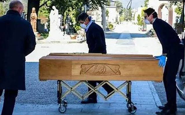 জানা গেছে, মৃতদের সৎকারেও কড়াকড়ি করছে ইতালি সরকার। ভাইরাস যাতে ছড়িয়ে না পড়ে সেজন্য শেষ প্রার্থনায় অল্প কিছু নিকটজনকে অনুমতি দেয়া হয় অংশগ্রহণে। পরিবারের সদস্যরাও তাতে মাস্ক পরে যোগ দেন। ইতালির আরেক গ্রাম জোঙ্গোতে স্থানীয় পাদ্রিরা সিদ্ধান্ত নিয়েছেন, তারা দিনে একবার মৃত্যু ঘণ্টা বাজাবেন। কারণ করোনায় মৃত্যুর মিছিল বড় হতে থাকায় সারাদিনই ঘণ্টা বাজাতে হচ্ছিল।