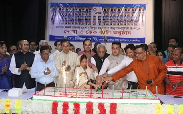 পরে সন্ধ্যায় নগরের টাউনহলস্থ অ্যাডভোকেট তারেক স্মৃতি অডিটোরিয়ামে ১০০ পাউন্ড ওজনের কেক কেটে বঙ্গবন্ধুর জন্মশতবার্ষিকী উদযাপন করে ময়মনসিংহ সিটি করপোরেশন (মসিক)। এসময় ময়মনসিংহ সিটি করপোরেশনের (মসিক) কাউন্সিলর ও কর্মকর্তা-কর্মচারীদের নিয়ে কেক কাটেন মেয়র ইকরামুল হক টিটু।