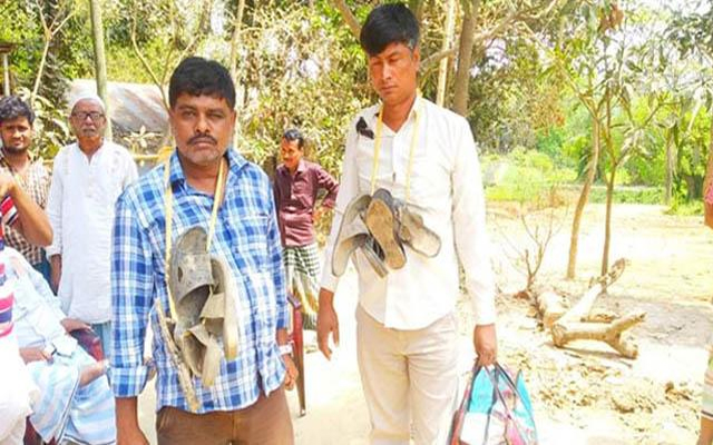 এক পর্যায়ে এলাকাবাসী প্রতারণার বিষয়টি বুঝতে পেরে ওই দুই প্রতারককে আটক করে গণধোলাই দেয়। পাশাপাশি তাদের জুতার মালা পরিয়ে তালতলা ফাঁড়ি পুলিশের কাছে সোপর্দ করে।