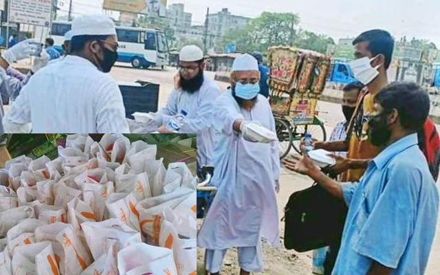 অপরদিকে খানকায়ে হুসাইনিয়া মাদানীয়ার মুতাওয়াল্লী ও ইত্তেফাকুল উলামার আন্তর্জাতিক বিষয়ক সম্পাদক মুফতি মাহবূবুল্লাহর ব্যক্তিগত উদ্যোগে শ্রমজীবী ও ভাসমান মানুষদের মাঝে রান্না করা খাবার বিতরণের ধারাবাহিকতায় ৪র্থ দিনের মতো আজ দপুর ২টায় নগরীর আন্তঃজেলা বাস টার্মিনালে(ব্রিজ মোড়)১৩৫টি রান্না করা খাবারের প্যাকেট ও পানির বোতল বিতরণ করা হয়। এছাড়াও ২৫০টি পরিবারের মাঝে চাল,ডাল,তেল, আলু ও নিত্য প্রয়োজনীয় সামগ্রী বিতরণ করা হয়।