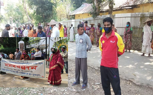আজ শনিবার কাজে যাওয়ার আগ মুহূর্তে সকাল ৯টা থেকে সকাল ১০টার মধ্যে বাংলাদেশ চা শ্রমিক ইউনিয়নের ডাকে চা-বাগানগুলোয় সামাজিক দূরত্ব বজায় রেখে এই কর্মসূচি পালিত হয়।