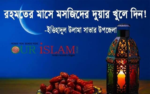 আওয়ার ইসলাম: সাভারের ওলামায়ে কেরামের সামাজিক সংগঠন ইত্তেহাদুল উলামা সাভার উপজেলার কেন্দ্রীয় কমিটি দাবি জানিয়েছেন, রহমত ও বরকতের মাস রমজান উপলক্ষে মসজিদ যেন উন্মুক্ত করে দেওয়া হয়।