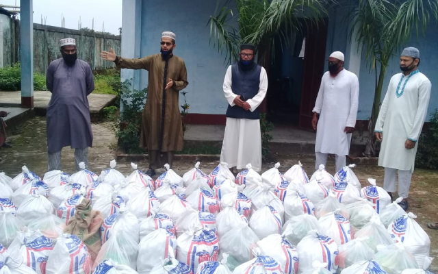 মঙ্গলবার সকালে আলহেরা আইডিয়াল একাডেমিতে সামাজিক দূরত্ব বজায় রেখে এক সংক্ষিপ্ত অনুষ্ঠানে এসব খাদ্যসামগ্রী বিতরণ করা হয়।