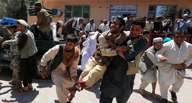 আবদুল্লাহ তামিম: আফগানিস্তানের পূর্বাঞ্চলে নানগারহার প্রদেশে জানাজা অনুষ্ঠানে আত্মঘাতী বিস্ফোরণে কমপক্ষে ৫০ জন নিহত হয়েছে। এক পুলিশ কমান্ডারের জানাজায় ওই বোমা হামলায় আরো ৬০ জন আহত হয়েছে বলে জানা গেছে।