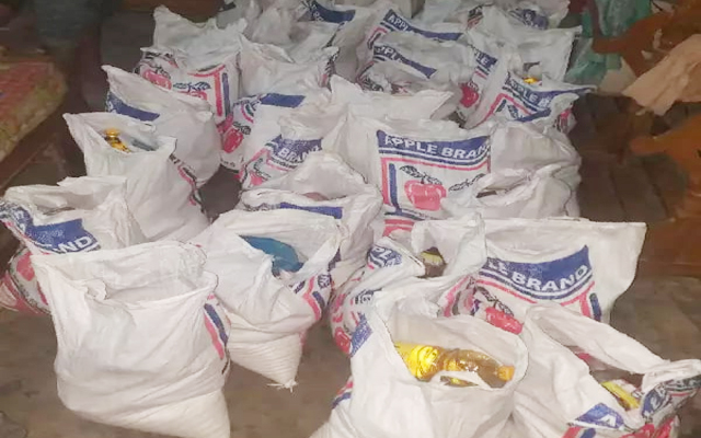 খাদ্যসামগ্রীর মধ্যে ছিল, ৪ কেজি চাল, ১ কেজি পিয়াজ, ২কেজি আলু, ১কেজি ডাল, ১কেজি চানা, ১ কেজি লবণ, ১লিটার সয়াবিন।