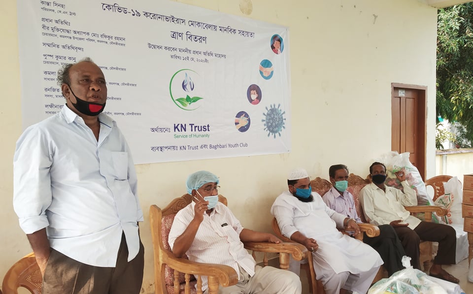 করোনা ভাইরাসের সংকটময় মুহুর্ত মোকাবেলা ও পবিত্র মাহে রমজান উপলক্ষ্যে বাঘবাড়ী ইয়ুথ ক্লাবের ব্যাবস্হাপনায় ইতালি প্রবাসীর কৃষ্ণ কান্ত সিংহের সহযোগিতায় কে.এন ট্রান্সের উপহার সামগ্রী বিতরণ অনুষ্ঠানে উদ্বোধন করা হয়েছে।
