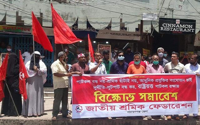 আওয়ার ইসলাম: রাষ্ট্রায়ত্ত পাটকল বন্ধ করে দেয়ার ঘোষণার প্রতিবাদে বিক্ষোভ সমাবেশ কর্মসূচি পালন করেছে জাতীয় শ্রমিক ফেডারেশন নারায়ণগঞ্জ জেলা।
