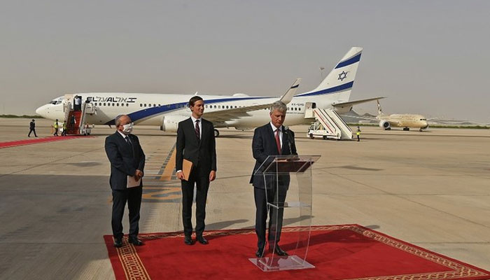 সংযুক্ত আরব আমিরাত পৌঁছে, মার্কিন প্রতিনিধি দলের প্রধান এবং হোয়াইট হাউসের উপদেষ্টা জারেড কিশনার গণমাধ্যমকে বলেন, সৌদি আরব ইসরায়েলি বিমানটিকে তার আকাশসীমা দিয়ে যাওয়ার অনুমতি দিয়েছে।