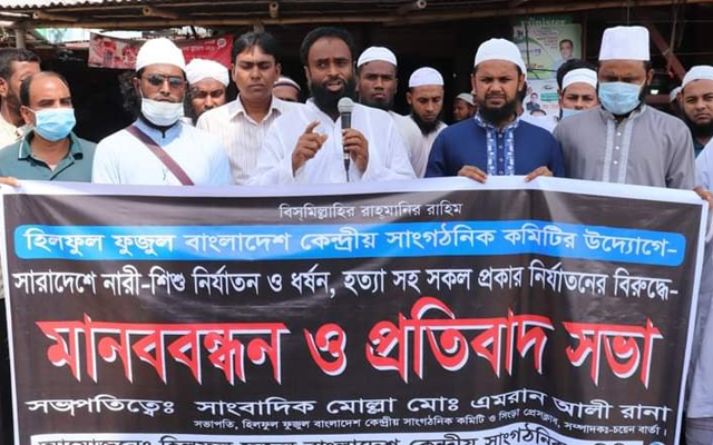 বৃহষ্পতিবার সকাল ১১টায় নাটোরের সিংড়া বাসষ্ট্যান্ড এলাকায় অনুষ্ঠিত সারাদেশব্যাপী নারী-শিশু নিযার্তন, হত্যা ও ধর্ষন বিরোধী মানববন্ধন ও প্রতিবাদ সভায় হিলফুল ফুযুল বাংলাদেশ কেন্দ্রীয় কমিটির নেতৃবৃন্দ এই দাবি জানান।
