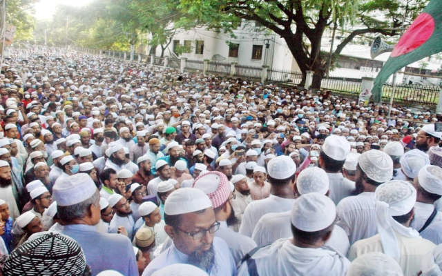 আজ শুক্রবার (৩০ অক্টোবর) বাদ জুমা লালবাগ পলাশীর মোড় এলাকায় এ ঘেরাও কর্মসূচি পালিত হয়। ঘেরাও পূর্ব সমাবেশে জাতীয় ইমাম সমাজ বাংলাদেশ দেশের সর্বস্তরের মুসলমানদের পক্ষ থেকে সরকারের প্রতি বিশেষ কিছু দাবি জানানো হয়। দাবীগুলো হলো: