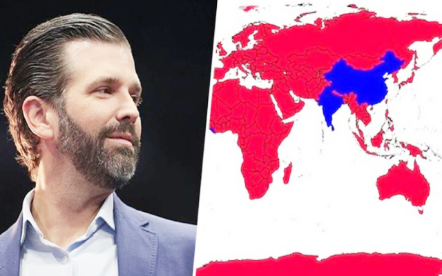 ডোনাল্ড ট্রাম্প জুনিয়রের ওই টুইটে প্রকাশিত ওয়ার্ল্ড ম্যাপে দেখা গেছে বিশ্বের প্রায় প্রতিটি দেশই লাল রংয়ের অর্থাৎ তারা ট্রাম্পের দল রিপাবলিকানদের সমর্থন করছে।