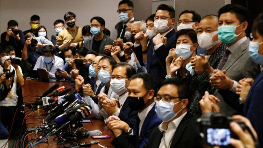 গত সপ্তাহে জাতীয় নিরাপত্তার প্রতি হুমকি উল্লেখ করে চীন নতুন আইনের মাধ্যমে গণতন্ত্রপন্থি চারজন নির্বাচিত আইনপ্রণেতাকে অযোগ্য ঘোষণা করে। এর প্রতিবাদে গণতন্ত্রপন্থি ১৯ জন আইনপ্রণেতাই পদত্যাগ করেন। ১৯৯৭ সালে যুক্তরাজ্যের হাত থেকে চীনের আয়ত্তে আসা হংকংয়ে এমন ঘটনা এবারই প্রথম।