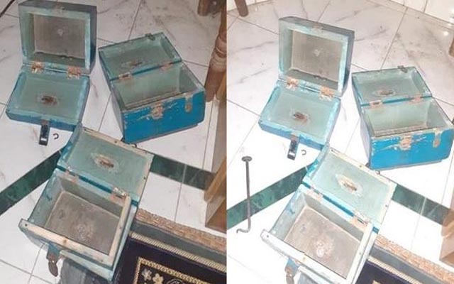 জুমার নামাজ আদায় শেষে মুসল্লিরা যখন চলে যায়, সে সময় মসজিদ ফাঁকা পেয়ে ৩টি দান বাক্স ভেঙে এবং অপর ৩টি দানবাক্স নিয়ে যেতে সক্ষম হয় চোর।