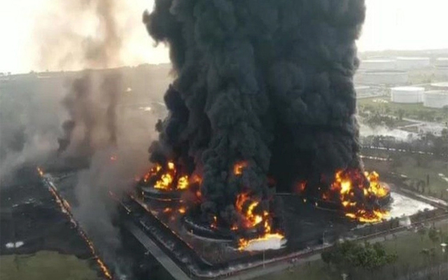 টিভি ফুটেজ ও সামাজিক যোগাযোগমাধ্যমের ভিডিওতে দেখা গেছে, সোমবার সকালেও দাউদাউ করে আগুন জ্বলছে তেল পরিশোধনাগারটিতে।