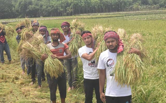 কৃষকের ধান কেটে ঘরে তুলে দিল ছাত্রলীগ