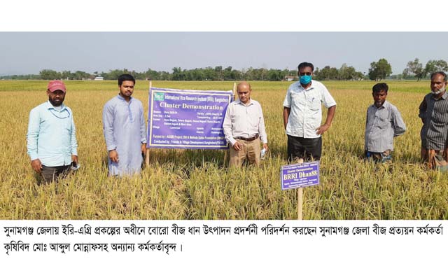 আন্তর্জাতিক ধান গবেষণা ইনস্টিটিউট’ ইরি, বাংলাদেশ এর সহযোগিতায় এবং ফ্রেন্ডস ইন ভিলেজ ডেভেলপমেন্ট বাংলাদেশ (এফআইভিডিবি) এর মাধ্যমে বাস্তবায়িত ইরি-এগ্রি প্রকল্পের অধীনে বোরো বীজ ধান উৎপাদন প্রদর্শনী পরিদর্শন করেছেন সুনামগঞ্জ জেলা বীজ প্রত্যয়ন কর্মকর্তা কৃষিবিদ মোঃ আব্দুল মোন্নাফসহ অন্যান্য কর্মকর্তাবৃন্দ।