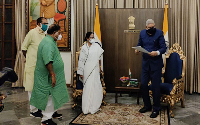 মমতার পদত্যাগ পত্র গ্রহণ করেছেন পশ্চিমবাংলার গভর্নর জগদীপ ধনখড়। এ সময় তিনি তৃণমূল কংগ্রেস প্রধানকে শুভেচ্ছাও জানান।