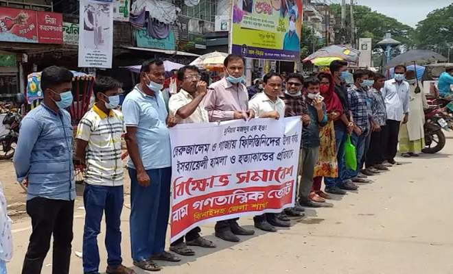জেরুসালেম ও গাজায় ফিলিস্তিনিদের উপর ইসরায়েলী হামলা ও হত্যাকান্ডের প্রতিবাদে ঝিনাইদহে মানববন্ধন কর্মসূচী পালিত হয়েছে।