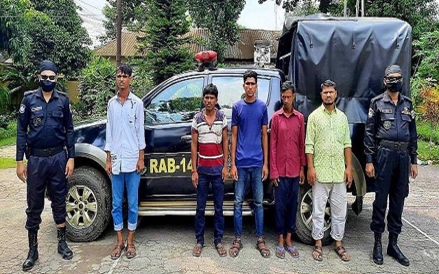 গ্রেপ্তাররা হলেন- নেত্রকোনার মোহনগঞ্জ থানার বিরামপুরের মৃত এখলাছ মিয়ার ছেলে মো. মানিক মিয়া (২৮), একই এলাকার কাচু চন্দ্র সাহার ছেলে চন্দন কুমার সাহা (৩৪), কিশোরগঞ্জের কটিয়াদি গনেরগাঁও চন্তিপাড়ার নজরুল ইসলামের ছেলে আলী আকবর (২৪) ও ব্রাহ্মণবাড়িয়ার আশুগঞ্জ উপজেলার আন্দিদিল গ্রামের হুমায়ুন মিয়ার ছেলে মো. আমিন (৩২)।