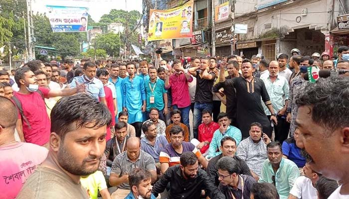 দেশের বিভিন্ন এলাকায় মন্দির, মণ্ডপে হামলা-চেষ্টার প্রতিবাদে মোমিন রোডে অবস্থান নেয় বাংলাদেশ হিন্দু বৌদ্ধ খ্রিষ্টান ঐক্য পরিষদের সদস্যরা। এতে অংশ নিয়ে রানা দাশগুপ্ত বলেন, এসব ঘটনার বিচার না হওয়া পর্যন্ত অবস্থান থেকে সরবো না। চট্টগ্রামে কোনো প্রতিমা বিসর্জন দেওয়া হবে না।