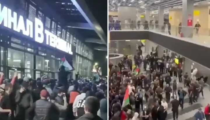 সামাজিক যোগাযোগমাধ্যমে প্রকাশ হওয়া ভিডিওতে দেখা গেছে, শত শত লোক বিমানবন্দরের টার্মিনালে ঢুকে পড়ছে। তাদের হাতে রয়েছে ফিলিস্তিনের পতাকা।