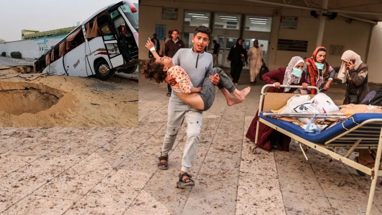 ইসরায়েলের হামলায় গাজায় ইউরোপিয়ান হাসপাতালের ভেতরে বড় বড় গর্ত তৈরি হয়েছে।