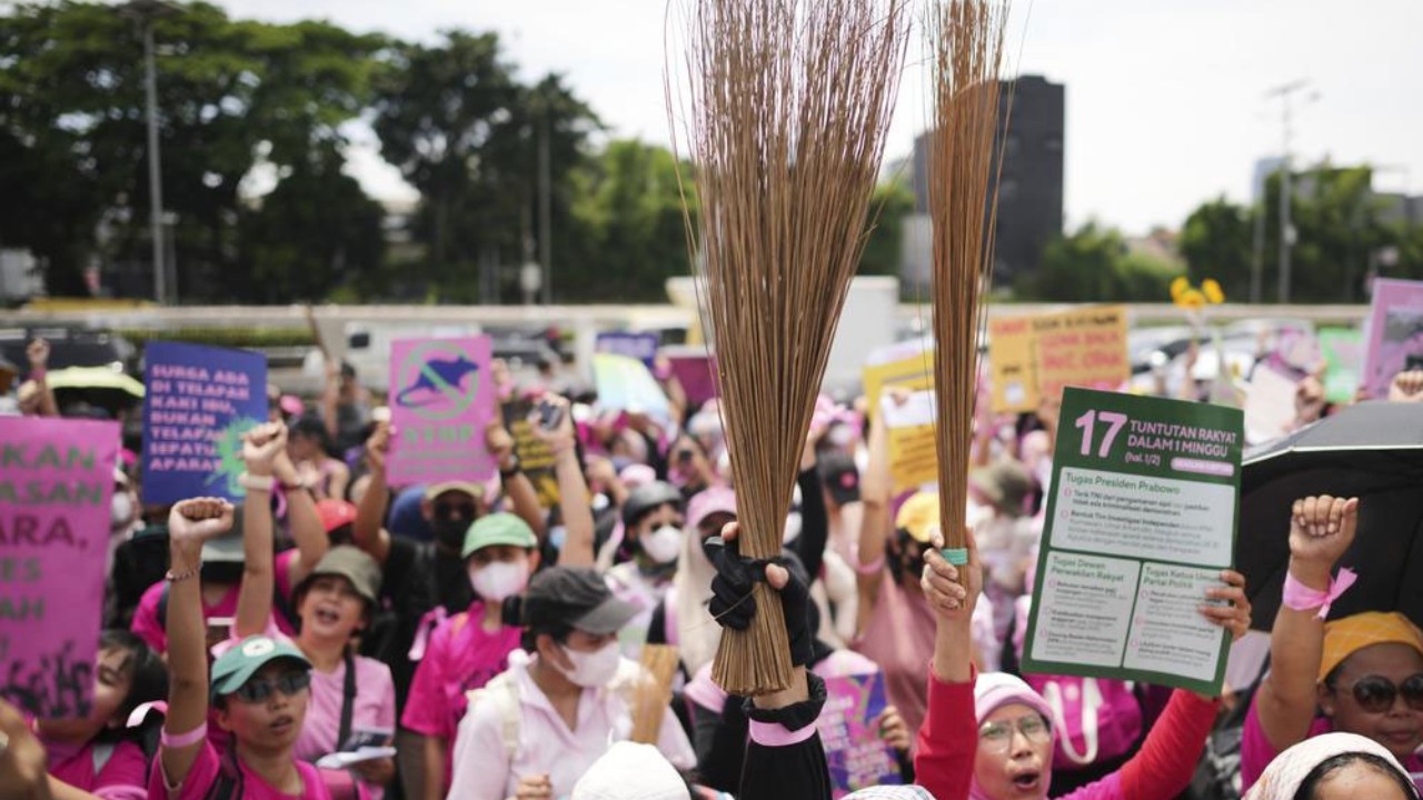 ইন্দোনেশিয়ার রাজধানী জাকার্তায় বুধবার শত শত নারী গোলাপি পোশাক পরে এবং ঝাড়ু হাতে মিছিল করে সংসদের সামনে জড়ো হন। পুলিশি নির্যাতন ও সরকারি ব্যয় অপচয়ের বিরুদ্ধে প্রতিবাদ জানাতে বিক্ষোভে নেমেছে ইন্দোনেশিয়ার শত শত নারী। প্রতিবাদের নেতৃত্ব দেয় ইন্দোনেশিয়ান উইমেনস অ্যালায়েন্স (আইডাব্লিউএ)। এটি ৯০টি নারী সংগঠন, মানবাধিকার সংগঠন, শ্রম ইউনিয়ন ও আদিবাসী গোষ্ঠীর সম্মিলিত একটি জোট।