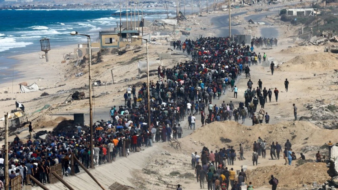 যুদ্ধবিরতির ঘোষণার পর থেকেই উত্তর গাজার রাস্তায় দেখা গেছে হাজারো বাস্তুচ্যুত মানুষকে। কেউ কাঁধে শিশু, কেউ ভাঙা সাইকেলে মালপত্র— সবাই ফিরছেন তাদের বিধ্বস্ত ঘরবাড়ি ও পরিচিত মাটিতে। ধ্বংসস্তূপের মাঝে এই ফিরে আসা যেন ফিলিস্তিনিদের অদম্য টিকে থাকার প্রতীক।