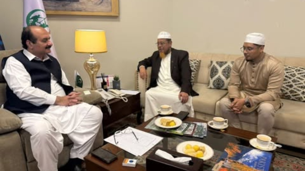 পাকিস্তানের ইসলামাবাদে অবস্থিত প্রাইম মিনিস্টার দপ্তরে যুব মন্ত্রণালয়ের উপমন্ত্রী রানা মাশহুদ আহমেদ খান বৃহস্পতিবার (১৬ অক্টোবর) ইসলামী আন্দোলন বাংলাদেশের সিনিয়র প্রেসিডিয়াম সদস্য ও ইসলামিক ফাউন্ডেশন বাংলাদেশ (ধর্ম বিষয়ক মন্ত্রণালয়) এর বোর্ড অব গভর্নর প্রিন্সিপাল মাওলানা সৈয়দ মোসাদ্দেক বিল্লাহ আল-মাদানীর সাথে বৈঠকে মিলিত হন। এসময় উপস্থিত ছিলেন অন্যান্য যুব মন্ত্রণালয়ের কর্মকর্তারা।