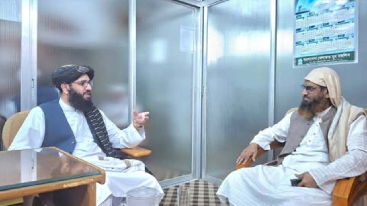 আফগানিস্তানের পররাষ্ট্র মন্ত্রণালয়ের এশিয়া বিষয়ক ডিজি মুফতী নূর আহমদ নূর বাংলাদেশ খেলাফত মজলিসের আমির (ইবনে শাইখুল হাদিস) মাওলানা মামুনুল হকের সঙ্গে সৌজন্য সাক্ষাৎ ও মতবিনিময় করেছেন।