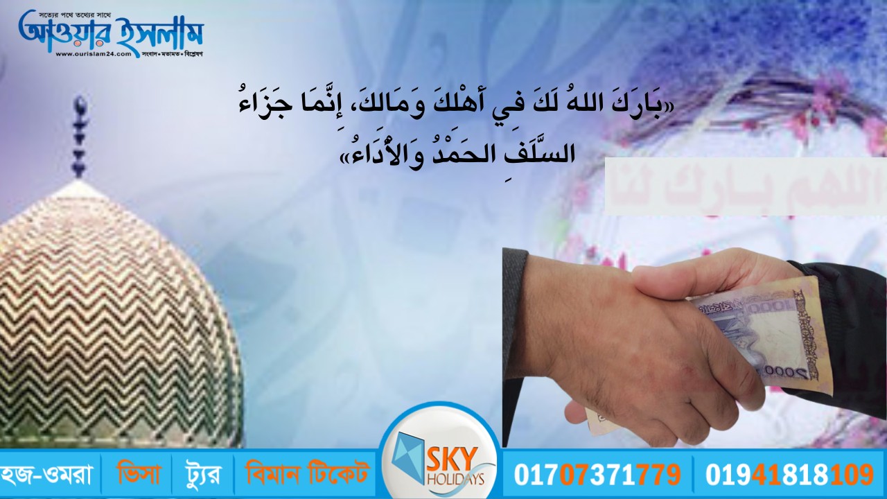 রাসুল সা. ঋণ পরিশোধের সময় ঋণদাতার কল্যাণ চেয়ে একটি দোয়া পড়তেন। দোয়াটি হলো-