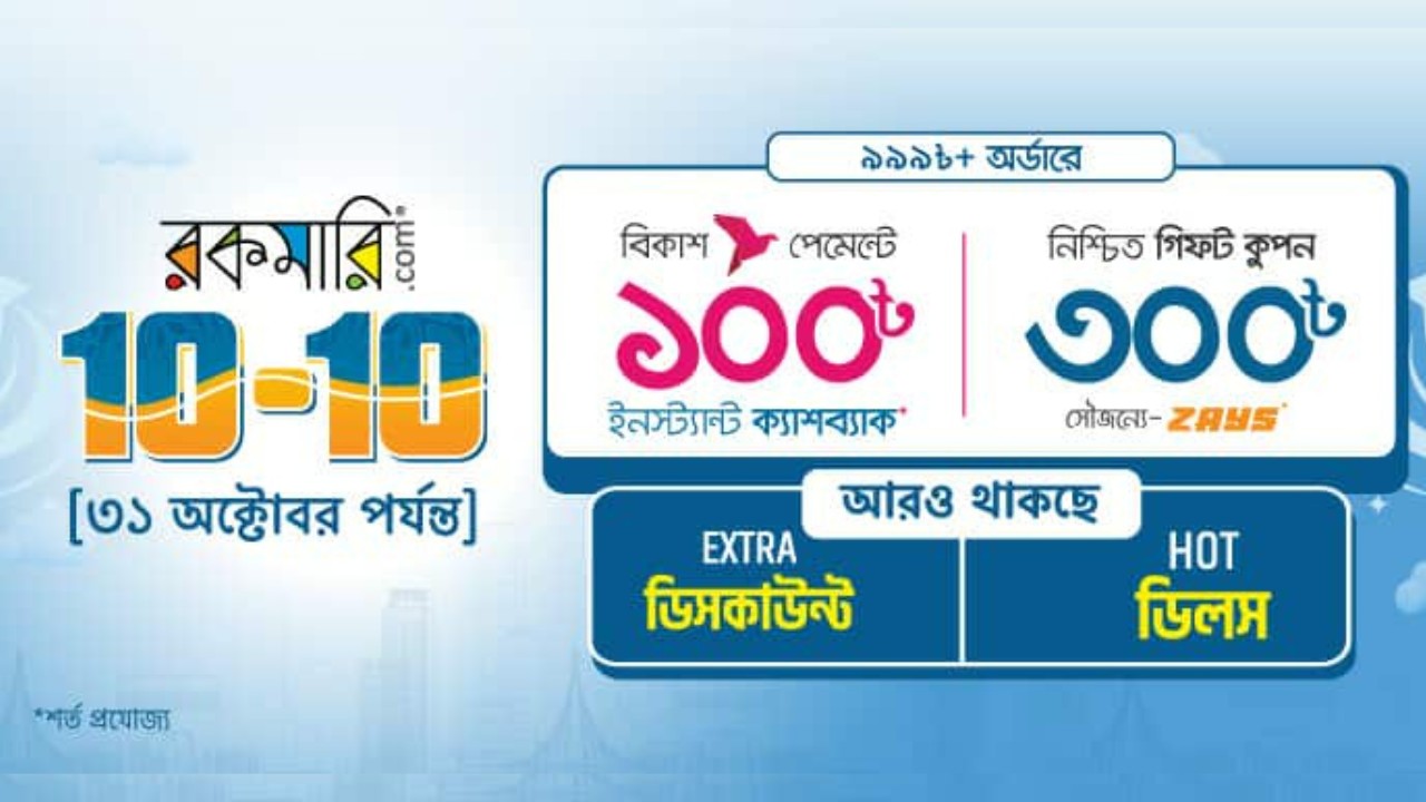রকমারির ‘১০-১০’ অফারে ৫ লক্ষাধিক পণ্যে বিশাল ছাড়!