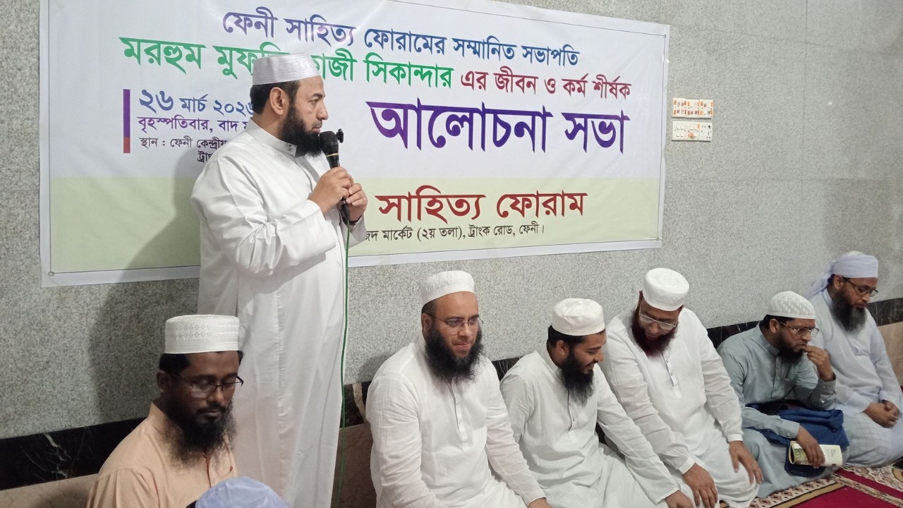 বৃহস্পতিবার (২৬ মার্চ) সন্ধায় ফেনীর কেন্দ্রীয় বড় জামে মসজিদে ফেনী সাহিত্য ফোরামের সদ্য মারা যাওয়া সভাপতি মুফতি কাজী সিকান্দারের জীবন ও কর্ম শীর্ষক আলোচনা সভা অনুষ্ঠিত হয়।