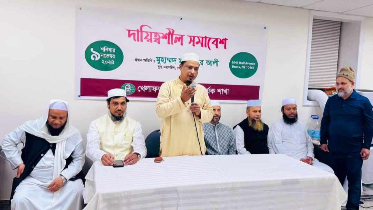 খেলাফত মজলিস আমেরিকা নিউইয়র্ক শাখার উদ্যোগে এক দায়িত্বশীল সমাবেশ গতকাল ৯ নভেম্বর, শনিবার শাখা সভাপতি মাওলানা হামিদুর রহমান আশরাফের সভাপতিত্বে ও সাধারণ সম্পাদক মুহাম্মদ রেদওয়ান আহমদ চৌধুরীর পরিচালনায় অনুষ্ঠিত হয়েছে।