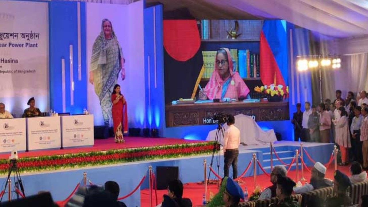 রূপপুরে পারমাণবিক বিদ্যুৎকেন্দ্রের জ্বালানি হস্তান্তর অনুষ্ঠানে ভার্চুয়ালি যুক্ত হয়েছেন প্রধানমন্ত্রী শেখ হাসিনা ও রাশিয়ার প্রেসিডেন্ট ভ্লাদিমির পুতিন।