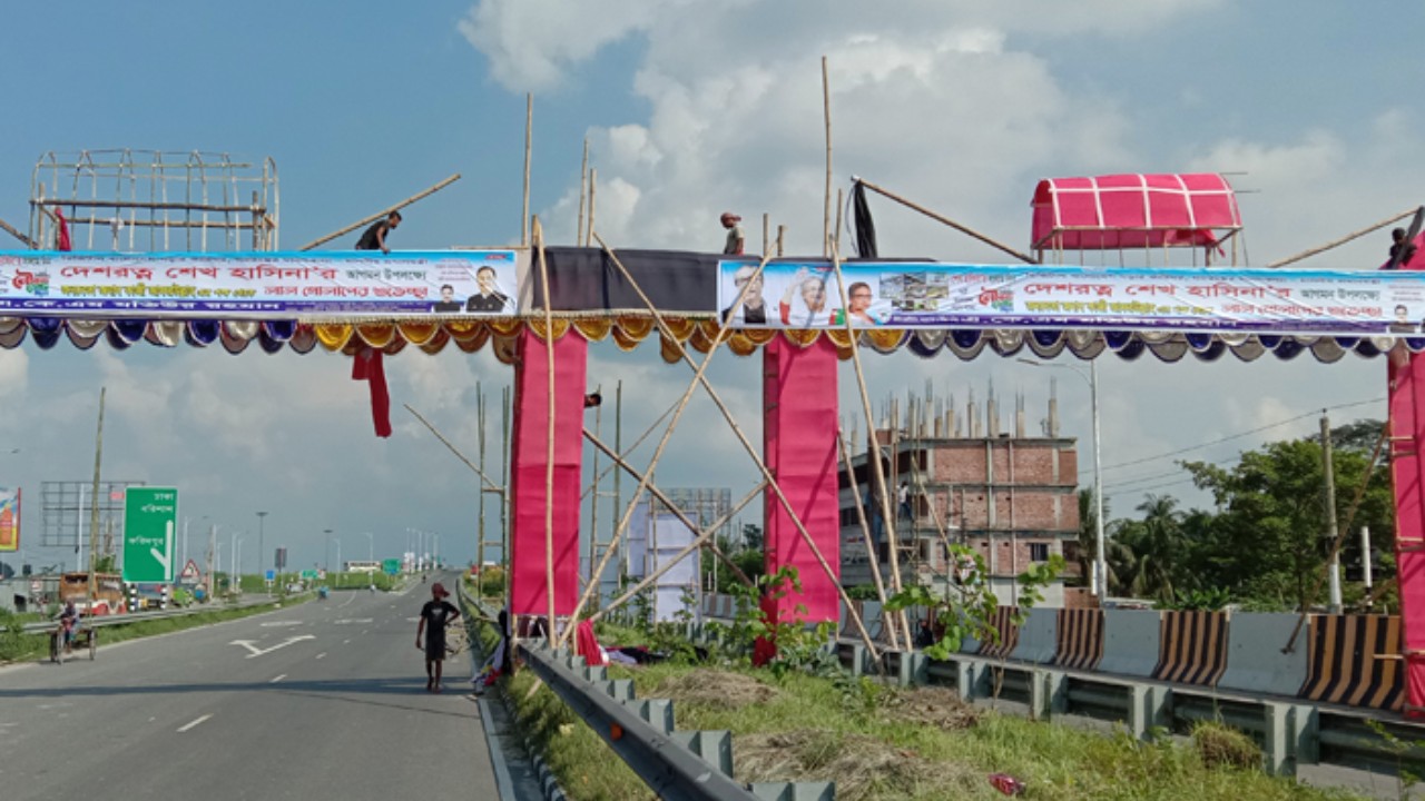 প্রধানমন্ত্রীকে বরণ করে নিতে ফরিদপুরের ভাঙ্গা উপজেলাকে সাজিয়ে তোলা হয়েছে নতুন রূপে। এক্সপ্রেসওয়ের ভাঙ্গা রেলওয়ে স্টেশন ও জংশন সংলগ্ন এলাকায় নির্মাণ করা হয়েছে তোরণ। সরকারের বিভিন্ন উন্নয়নমূলক কাজের ফিরিস্তি তুলে ধরে সাঁটানো হয়েছে ব্যানার-ফেস্টুন। ব্যানার ফেস্টুনে জায়গা পেয়েছে ‘প্রধানমন্ত্রীর আগমন, শুভেচ্ছা স্বাগতম’ বার্তা। বর্ণিল রূপে সাজানো হয়েছে ভাঙ্গার বামনকান্দা এলাকায় অবস্থিত ভাঙ্গা রেলওয়ে স্টেশন। আইনশৃঙ্খলা রক্ষাকারী বাহিনী, দলীয় নেতাকর্মীদের তৎপরতাও বেড়েছে ভাঙ্গায়। সংস্কার করা হয়েছে প্রধানমন্ত্রীর চলাচলের সড়কের ছোটখাটো গর্ত। এছাড়া ভাঙ্গা এক্সপ্রেসওয়ে শুরুর স্থান থেকে ডা. কাজী আবু ইউসুফ স্টেডিয়াম পর্যন্ত রাস্তাটি প্রশস্ত করা হয়েছে। রাস্তার দুই ধারের অবৈধ স্থাপনা ভেঙে ফেলা হয়েছে। রাস্তার পাশের বৈদ্যুতিক খুঁটিগুলো সরিয়ে রাস্তার বাইরে নেওয়া হয়েছে। এছাড়া স্টেডিয়ামের আশপাশের খালি জায়গাগুলো বালু দিয়ে ভরাট করে গাড়ি রাখা এবং লোকজন দাঁড়ানোর ব্যবস্থা করা হয়েছে। প্রধানমন্ত্রী ও আওয়ামী লীগের সভানেত্রীকে বরণ করতে ভাঙ্গা ও ফরিদপুরে কেন্দ্রীয় নেতাদের নিয়ে একাধিক বর্ধিত সভা করেছে আওয়ামী লীগ।