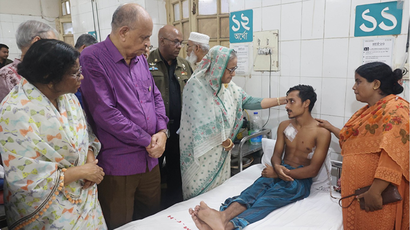 এ সময় প্রধানমন্ত্রী ঢাকা মেডিক্যাল কলজে হাসপাতালের কয়েকটি ওয়ার্ড ঘুরে আহতদের খোঁজখবর নেন। তিনি চিকিৎসক ও নার্সদের সঙ্গে কথা বলেন।