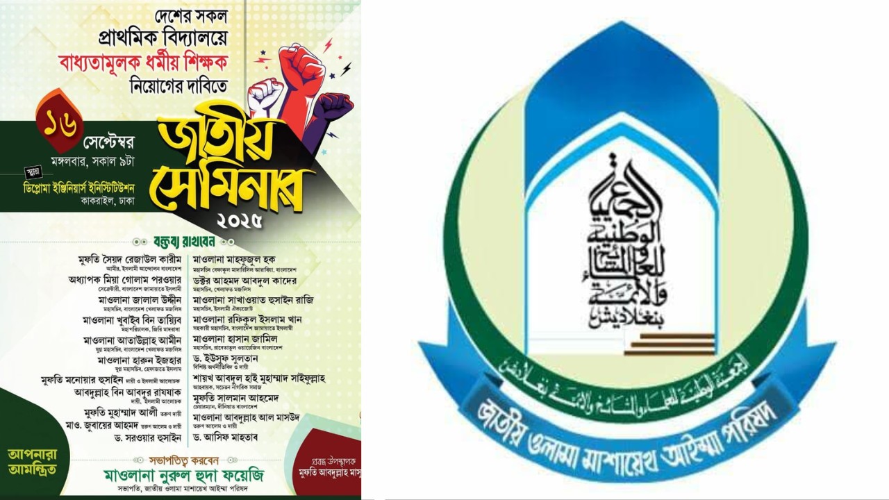 দেশের সকল প্রাথমিক বিদ্যালয়ে বাধ্যতামূলকভাবে ধর্মীয় শিক্ষক নিয়োগের দাবিতে আগামীকাল মঙ্গলবার (১৬ সেপ্টেম্বর ২০২৫) জাতীয় সেমিনার আয়োজন করেছে জাতীয় ওলামা মাশায়েখ আইম্মা পরিষদ।