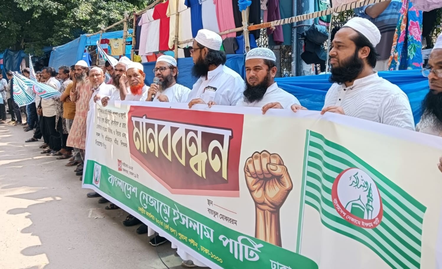 আজ ১৪ অক্টোবর ২০২৫/ সকাল ১১টায় জাতীয় মসজিদ বায়তুল মোকাররম এর উত্তর গেটে বাংলাদেশ নেজামে ইসলাম পার্টি ঢাকা মহানগর এর উদ্যোগে ৫ দফা দাবী বাস্তবায়নের দাবীতে মানববন্ধন কর্মসূচি পালন করেছে।