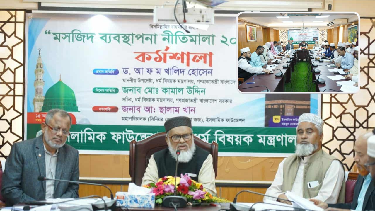 এর আগে ইসলামিক ফাউন্ডেশনের সচিব শেখ মুর্শিদুল ইসলাম কর্মশালায় মসজিদ ব্যবস্থাপনা (সংশোধিত) নীতিমালা ২০২৫ এর খসড়া উপস্থাপন করেন।