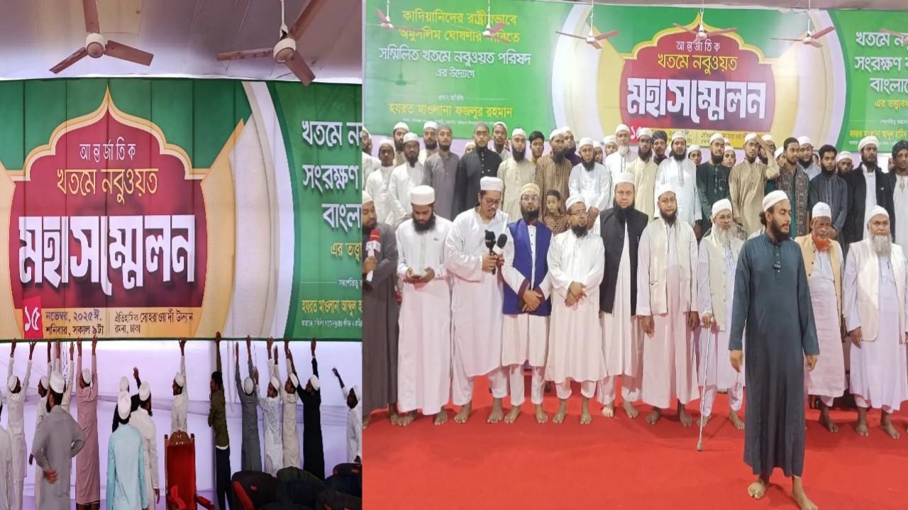 কাদিয়ানি সম্প্রদায়কে রাষ্ট্রীয়ভাবে অমুসলিম ঘোষণার দাবিতে আজ শনিবার (১৫ নভেম্বর) ঐতিহাসিক সোহরাওয়ার্দী উদ্যানে সম্মিলিত খতমে নবুওয়ত পরিষদের উদ্যোগে আন্তর্জাতিক খতমে নবুওয়ত মহাসম্মেলন অনুষ্ঠিত হবে। এ মহাসম্মেলনে অংশ নিতে ইতোমধ্যেই বিদেশি মেহমানগণ রাজধানী ঢাকায় অবস্থান নিয়েছেন। মহাসম্মেলনের সব প্রস্তুতি সম্পন্ন হয়েছে। আজ লাখো তৌহিদি জনতার ঢল নামবে এই মহাসম্মেলনে।