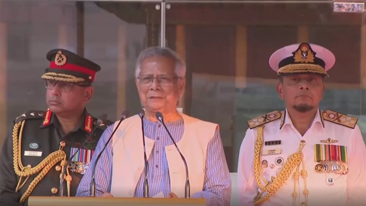 বক্তব্যের শুরুতে আজ ভূমিকম্পে হতাহতের ঘটনায় শোক ও দুঃখ প্রকাশ করেন প্রধান উপদেষ্টা। পরে স্বাধীনতা যুদ্ধে শহীদ এবং ২৪-এর অভ্যুত্থানে শহীদদের স্মরণ করেন তিনি।