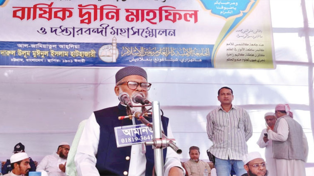 শুক্রবার (২১ নভেম্বর) দুপুরে চট্টগ্রামের আল-জামিয়াতুল আহলিয়া দারুল উলুম মুঈনুল ইসলাম হাটহাজারী মাদরাসার বার্ষিক মাহফিল ও দস্তারবন্দী সম্মেলনের সমাপনী অনুষ্ঠানে প্রধান অতিথির বক্তব্যে তিনি এসব কথা বলেন।
